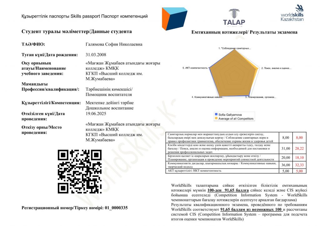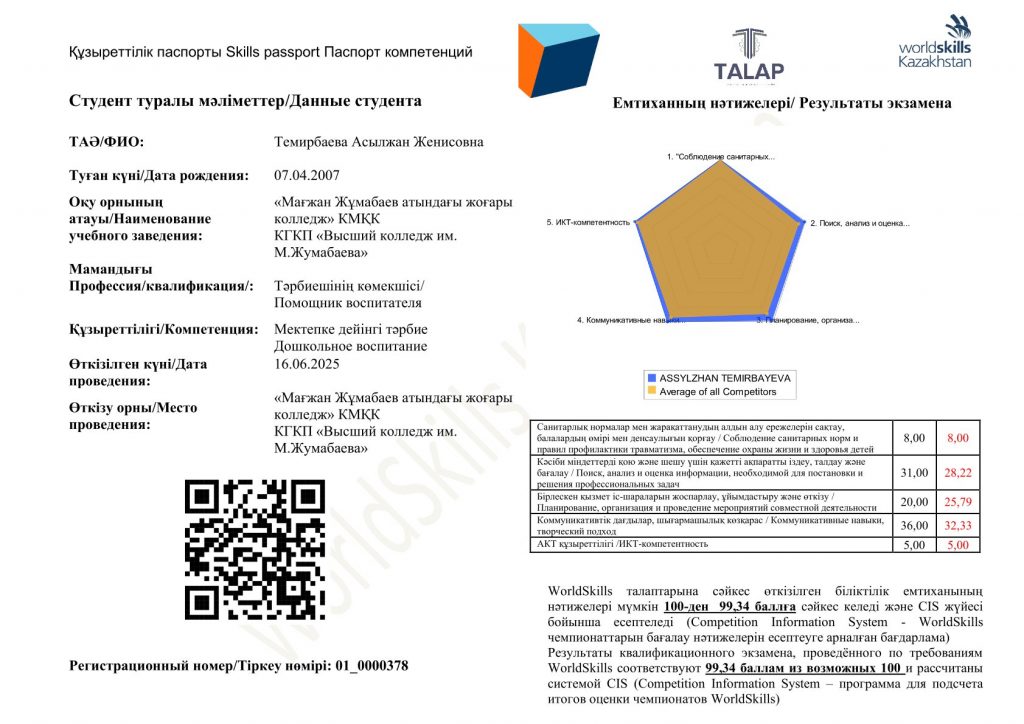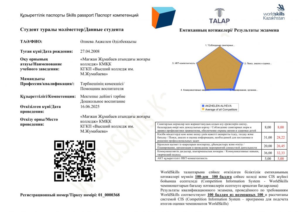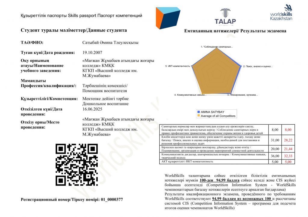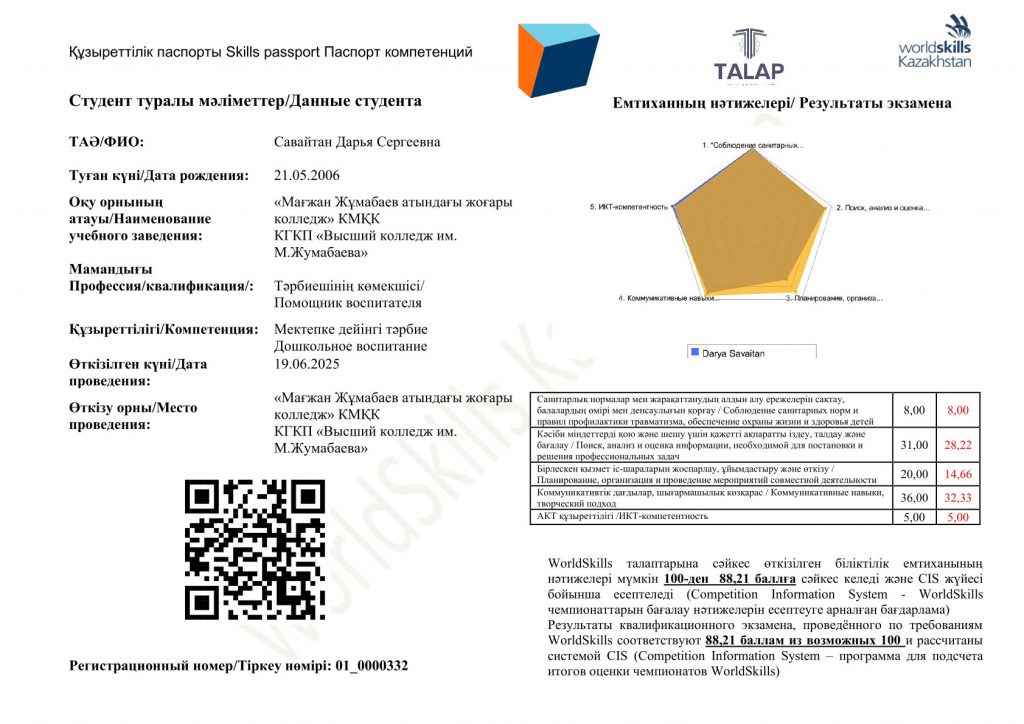 Мамандық: 01120100 – Дошкольное воспитание и обучение. Біліктілік: 3W01120101 (код в МСКО 0112, код в НКЗ РК 5311-2) - Помощник воспитателя 2025