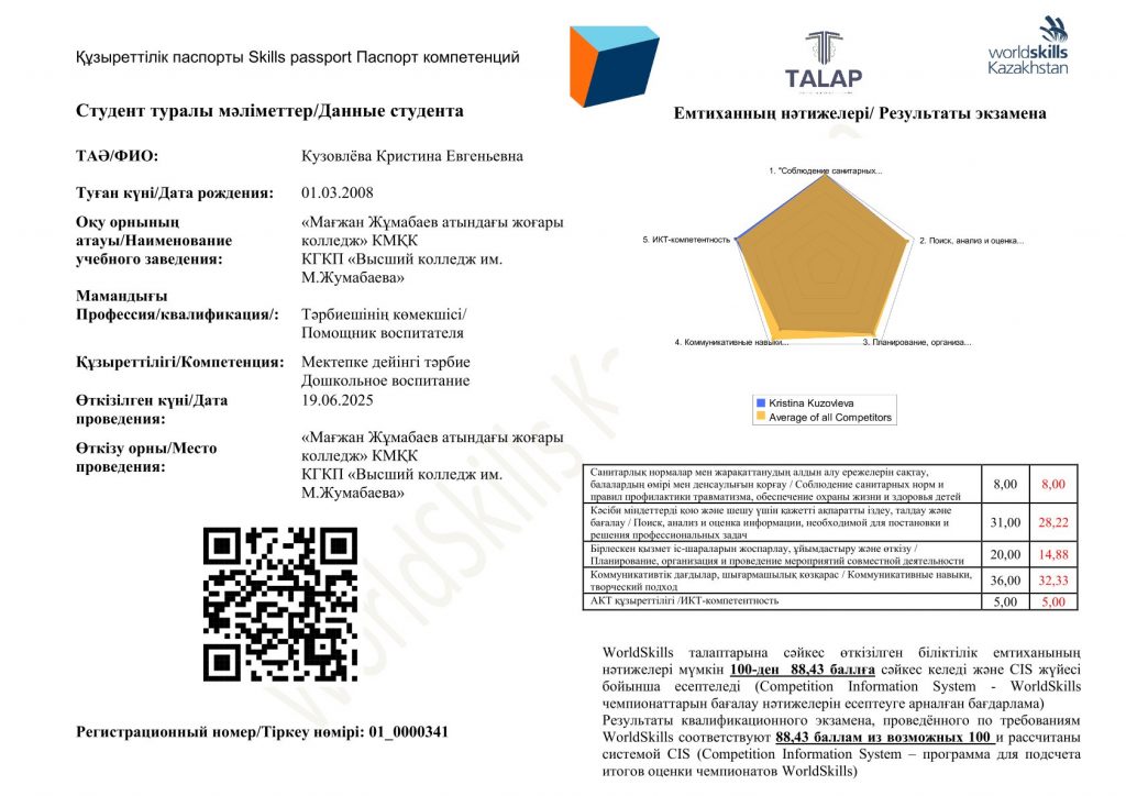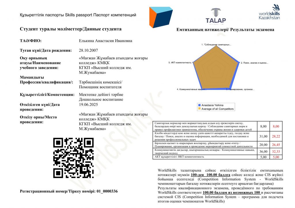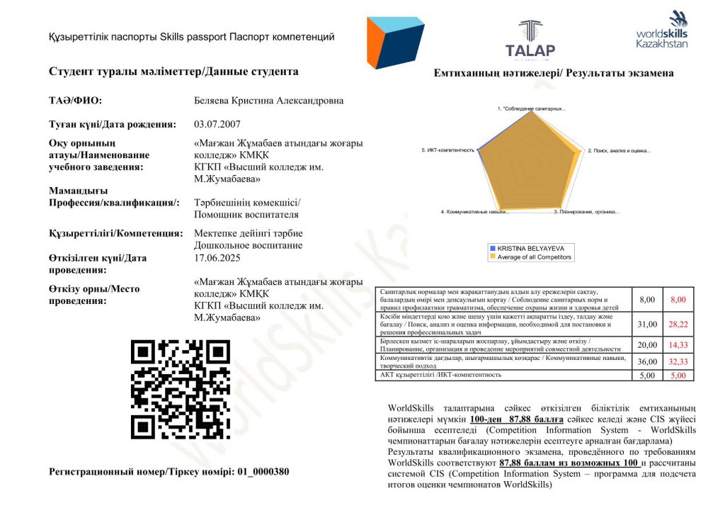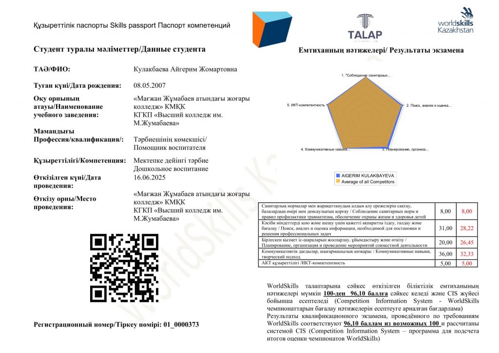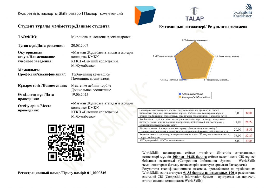 Мамандық: 01120100 – Дошкольное воспитание и обучение. Біліктілік: 3W01120101 (код в МСКО 0112, код в НКЗ РК 5311-2) - Помощник воспитателя 2025
