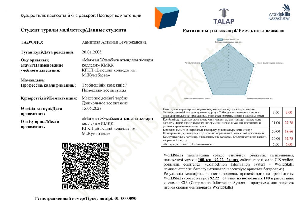 Мамандық: 01120100 – Дошкольное воспитание и обучение. Біліктілік: 3W01120101 - Помощник воспитателя (2023)