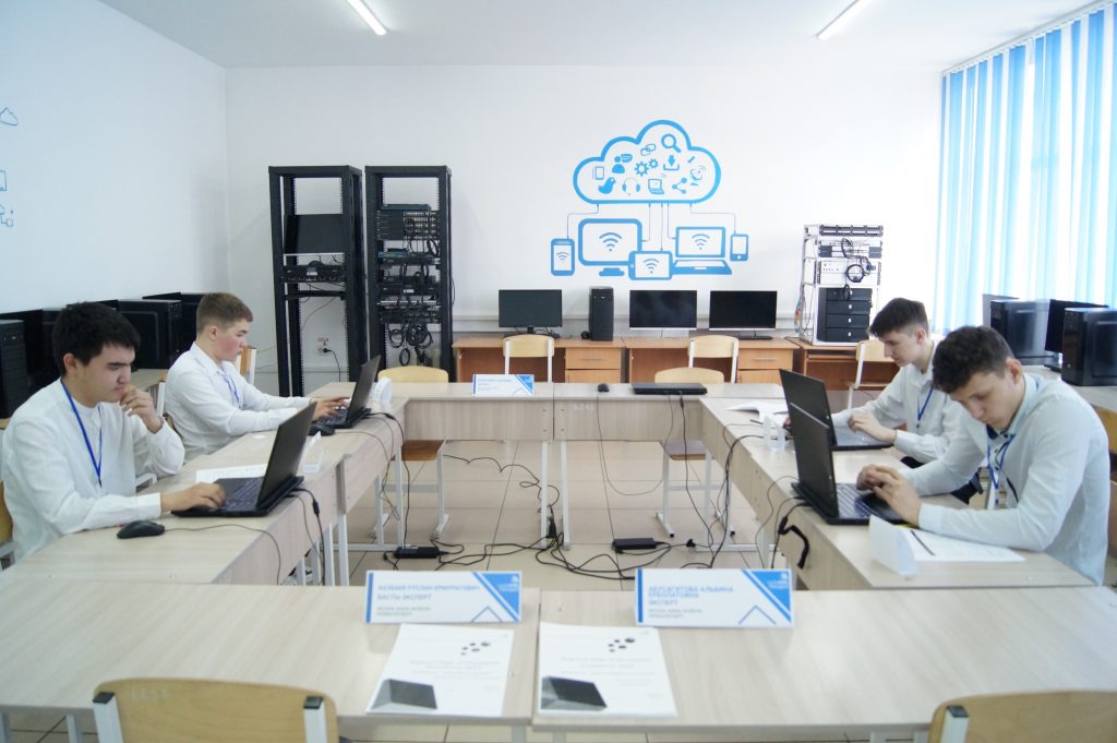Подготовка студентов к чемпионату WorldSkills Kazakhstan по компетенции «Сетевое и системное администрирование» проводится на типовых комплектах учебного оборудования Cisco. Комплект состоит из телекоммуникационной стойки, который содержит всё сетевое оборудование для организации соревнований, а также сервера, который является высокопроизводительным вычислительным узлом с предустановленным программным обеспечением, основной задачей которого является развёртывание на своей платформе виртуальных серверных операционных систем для каждого из рабочих мест студентов.
