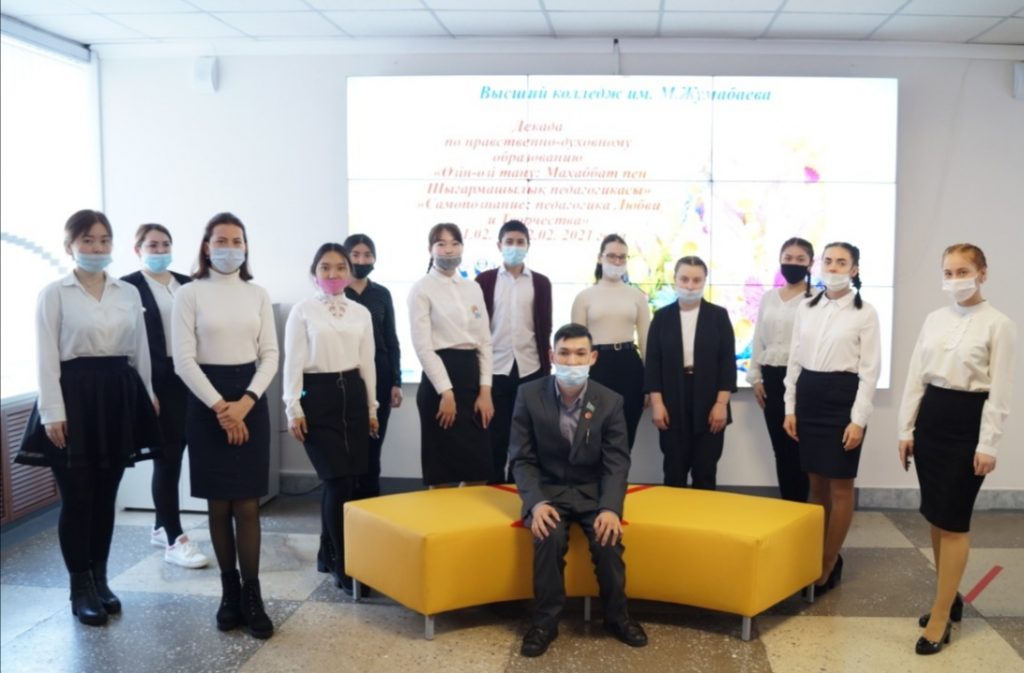 «Өзін өзі тану: махаббат пен шығармкашылық педагогикасы» онкүндігінің аясында М.Жұмабаев атындағы жоғары колледжінің бірінші курс студенттерінің қатысуымен «Жаныңда жүр жақсы адам» тақырыбында «АРДОС-Журек» мүгедектер бірлестігінің жетекшісі Кәрім Ақжан Нұрланұлымен рухани кездесу өтті. Кездесу мақсаты - студенттердің рухани құндылықтарын байыту, өскелең ұрпақты адамгершілік идеалдарға баулу. Кездесу барысында студенттердің жалпыадамзаттық, жалпыұлттық, патриоттық, тұлғалық құндылықтарын үйлесімді түрде құру және тәрбие жөнінде-студенттерді волонтерлік қозғалысқа тарту жұмыстары атқарылды.