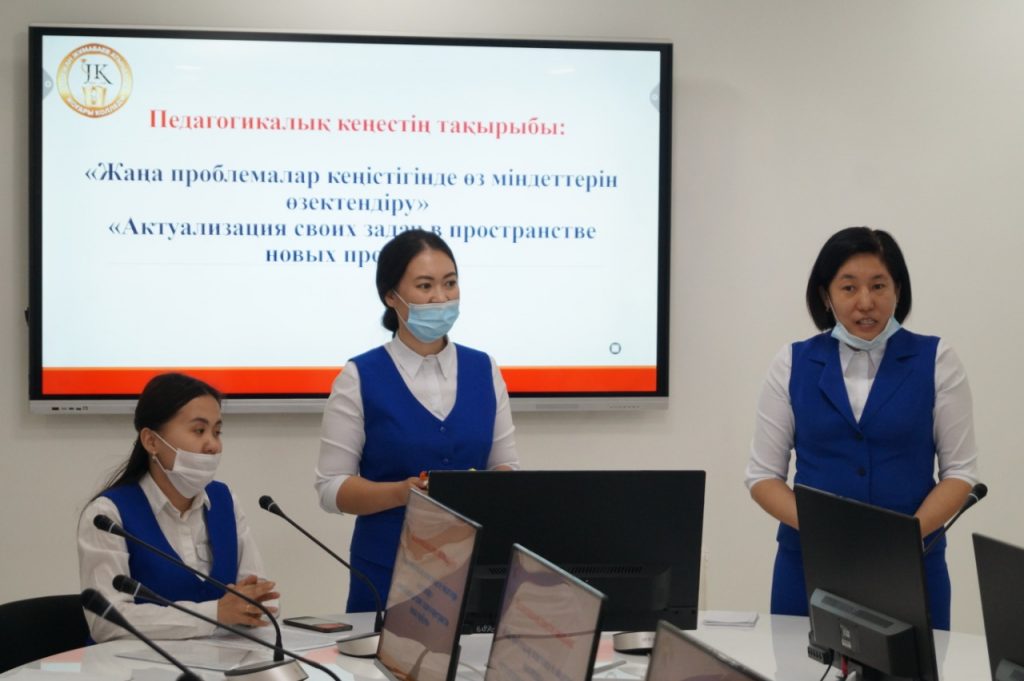 Білім беру мазмұнын жаңарту жағдайында педагогтің кәсіби құзыреттілігіне сапалы жаңа талаптар қойылады. Мұғалім өзгерісті жүзеге асырудың негізгі тұлғасына айналады. Қазақстандық білім беруді жаңартудың тиімділігі оның болып жатқан инновациялық процестердің негізгі идеяларын түсіну деңгейіне, оның осы өзгерістерді жүзеге асыруға дайындығына байланысты. «Педагогтің жеке білім беру бағыты – кәсіби дамудың тиімді технологиясы» тақырыбында өткен педагогикалық кеңесте дәл осы мәселелер қозғалды. Педагогикалық кеңестің пленарлық бөлімінде колледж директоры Е.Б. Жанділдин білім беру мазмұнын жаңарту жағдайында педагогтардың рөлі туралы мәселені қарастырды, жаңарту жолында колледжді одан әрі дамыту және әр педагогтің кәсіби өсуі бойынша бағдарлар берді.