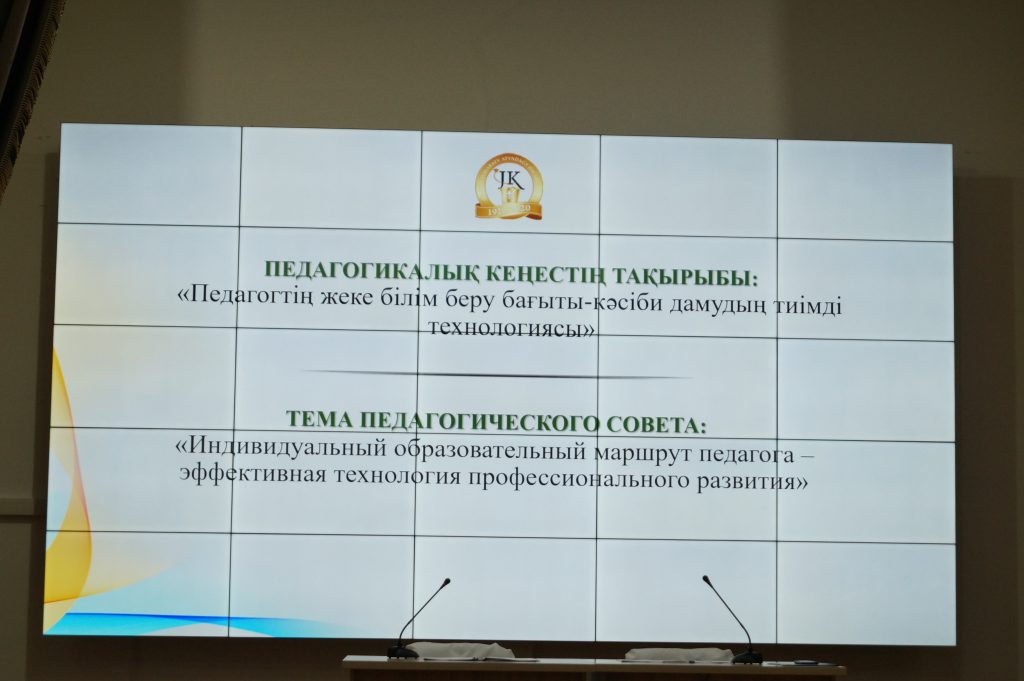 Білім беру мазмұнын жаңарту жағдайында педагогтің кәсіби құзыреттілігіне сапалы жаңа талаптар қойылады. Мұғалім өзгерісті жүзеге асырудың негізгі тұлғасына айналады. Қазақстандық білім беруді жаңартудың тиімділігі оның болып жатқан инновациялық процестердің негізгі идеяларын түсіну деңгейіне, оның осы өзгерістерді жүзеге асыруға дайындығына байланысты. «Педагогтің жеке білім беру бағыты – кәсіби дамудың тиімді технологиясы» тақырыбында өткен педагогикалық кеңесте дәл осы мәселелер қозғалды. Педагогикалық кеңестің пленарлық бөлімінде колледж директоры Е.Б. Жанділдин білім беру мазмұнын жаңарту жағдайында педагогтардың рөлі туралы мәселені қарастырды, жаңарту жолында колледжді одан әрі дамыту және әр педагогтің кәсіби өсуі бойынша бағдарлар берді.