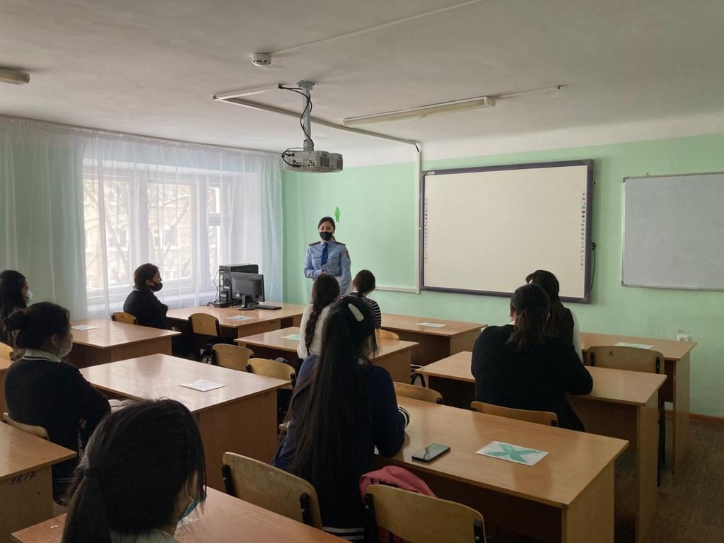 2021 жылғы 1-10 ақпан аралығында колледждің әлеуметтік-психологиялық қызметі кәмелетке толмағандардың істері жөніндегі инспектор Мусина Сәния Сайранқызымен бірлесіп, кәмелетке толмағандар арасында құқық бұзушылықтың алдын алу бойынша 1-2 курс студенттерімен түсіндіру әңгімелерін өткізді. Инспектор кәмелетке толмағандардың құқыққа қарсы мінез-құлқы үшін жауапкершілігі және кәмелетке толмағандар жасаған құқық бұзушылықтардың алдын алу ерекшеліктері туралы айтып берді. Тәртіп сақшысы балалармен сабаққа қатысу және сабақтан кейін бос уақыттарын қалай өткізу туралы әңгімелесті. Өз дәрісінде инспектор кәмелетке толмағандарға қатысты жыныстық қолсұғылмаушылыққа қарсы қылмыстар туралы, қоғамдық орындарда есірткі құралдарын пайдалану, темекі шегу және спирттік ішімдіктерді ішу, түнгі уақытта кәмелетке толмағандардың ата-анасының немесе заңды өкілдерінің еріп жүруінсіз көшеде болуы, нормативтік актілердің басқа да бұзушылықтары туралы түсіндірді.