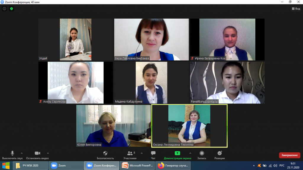 2020 жылдың 25 қарашасы күні Мағжан Жұмабаев атындағы жоғары колледжде онлайн-конференциялар өткізу үшін ZOOM- платформасы арқылы «Мектепке дейінгі тәрбие және оқыту» құзыреттілігі бойынша WORLDSKILS KAZAKHSTAN -2020» аймақтық чемпионаты ұйымдастырылды.