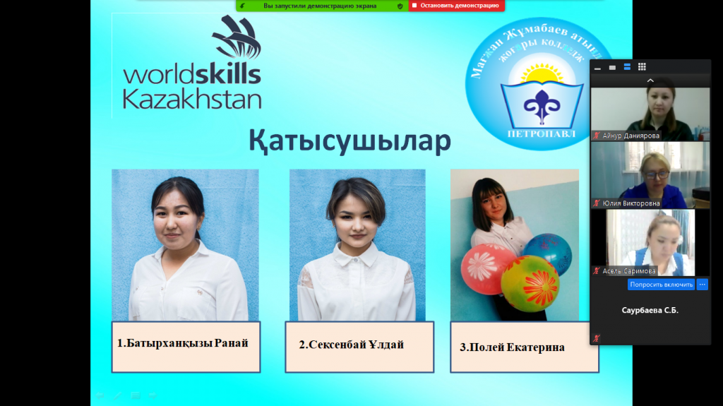 2020 жылдың 25 қарашасы күні Мағжан Жұмабаев атындағы жоғары колледжде онлайн-конференциялар өткізу үшін ZOOM- платформасы арқылы «Мектепке дейінгі тәрбие және оқыту» құзыреттілігі бойынша WORLDSKILS KAZAKHSTAN -2020» аймақтық чемпионаты ұйымдастырылды.